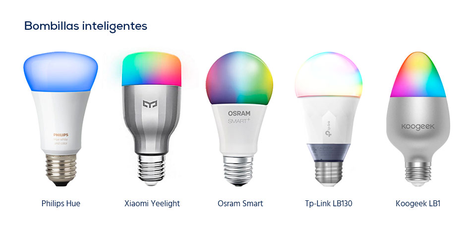 - Algunos modelos de luces inteligentes pueden ser los siguientes: Philips Hue (las más famosas), Oshram, Xiaomi, TpLink, Koogeek… Te aconsejamos, que antes de adquirir las tuyas, investigues bien sobre el tipo de sistema con el que funcionan (si necesitan Hub/puente de conexión o no, si son compatibles con tu Smartphone o no, si se integran con otros dispositivos que tengas en casa o no…). Si tienes alguna duda con esto consúltanos dejando un comentario en este post y te ayudaremos encantados. A veces esta parte puede convertirse en un quebradero de cabeza.