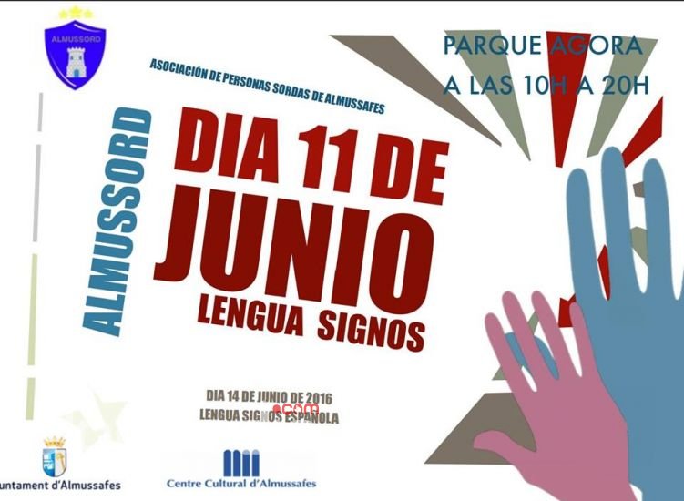 El próximo sábado día 3 de junio, la Asociación de Personas Sordas de Almussafes (Almussord) , con la colaboración del Ayuntamiento y el Instituto Valenciano de Cultura, organiza un festival de cortometrajes en Lengua de Signos.