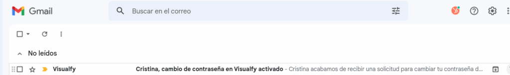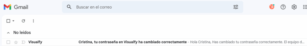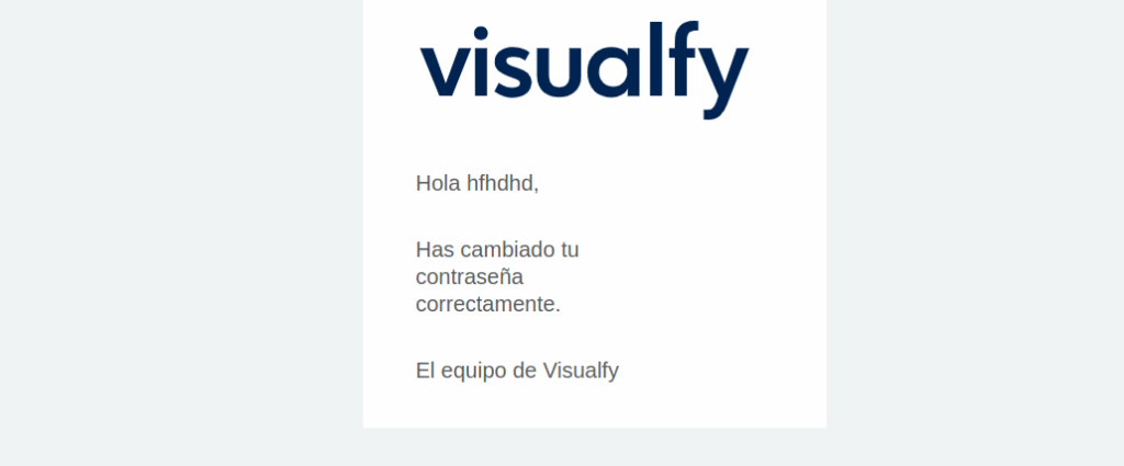 • Cuando la contraseña se ha restaurado de forma correcta, se recibe un email.